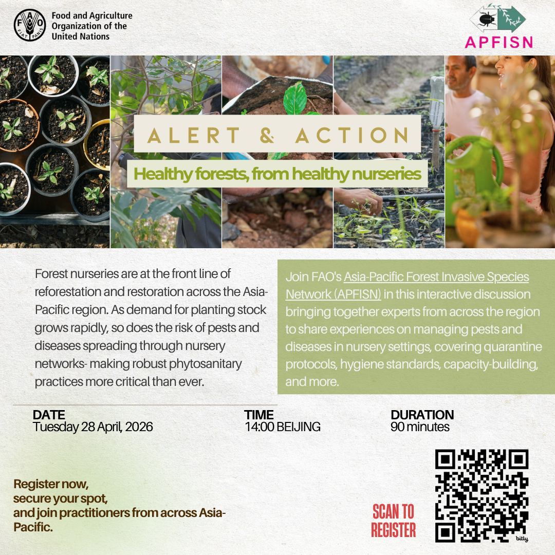 The Asia-Pacific Forest Invasive Species Network (APFISN) has been established as a response to the immense costs and dangers posed by invasive species to the sustainable management of forests in the Asia-Pacific region.
